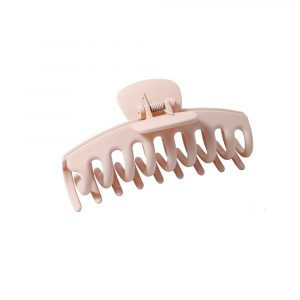 Versatile hair claw in blush pink matte design, perfect for messy buns to elegant updos.